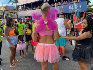 São milhares de borboletas nois circuitos da capital e há quem a use sem o bustiê deixando os seios à mostra - os mans - e existem aqueles que usam tiaras nas cabeças, luvas, etc, a depender de cada folião ou foliã. Normalmente os tênis brancos predominam como calçados.