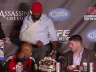 Jones ainda comentou sua decisão de entrar ao som da música "Could you be loved" ("Poderia você ser amado"), de Bob Marley, numa clara brincadeira com as vaias e críticas que vem recebendo nos últimos meses, intensificadas após ser preso por dirigir embriagado e pela recusa a enfrentar Chael Sonnen com oito dias de sobreaviso, que resultou no cancelamento do UFC 151.