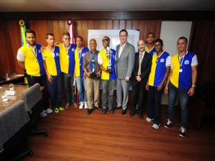 O time de Futebol de 5 do Instituto de Cegos da Bahia (ICB), que conquistou recentemente o tricampeonato mundial da categoria, disputado na República Tcheca, foi recebido na tarde desta terça-feira 14, pelo governador Rui Costa e pelo secretário estadual do Trabalho e Esporte, Álvaro Gomes. “Este ano, a competição nacional já está definida e será no Rio de Janeiro. Mas, em 2016, a Bahia vai pleitear a sua realização no Ginásio de Esportes de Cajazeiras”, defendeu o governador Rui Costa.